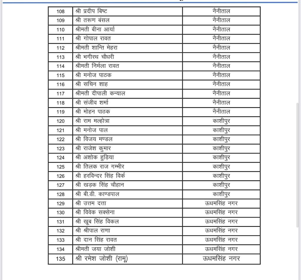 BJP State Working Committee Meeting: उत्तराखंड भाजपा की कार्यसमिति की अहम बैठक आगामी 29-30 जनवरी को ऋषिकेश में होगी। भाजपा ने प्रदेश कार्यसमिति और विशेष आमंत्रित सदस्यों की घोषणा कर दी है। प्रदेश मीडिया प्रभारी मनवीर सिंह चौहान ने कहा कि प्रदेश अध्यक्ष महेंद्र भट्ट के निर्देश पर यह नियुक्तियां की गयी है। प्रदेश कार्यसमिति मे 135 सदस्य तथा विशेष आमंत्रित सदस्यों मे 46 एवं स्थाई आमंत्रित 25 सदस्य नियुक्त किये गए हैं।
