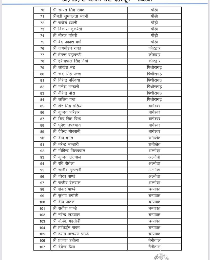 BJP State Working Committee Meeting: उत्तराखंड भाजपा की कार्यसमिति की अहम बैठक आगामी 29-30 जनवरी को ऋषिकेश में होगी। भाजपा ने प्रदेश कार्यसमिति और विशेष आमंत्रित सदस्यों की घोषणा कर दी है। प्रदेश मीडिया प्रभारी मनवीर सिंह चौहान ने कहा कि प्रदेश अध्यक्ष महेंद्र भट्ट के निर्देश पर यह नियुक्तियां की गयी है। प्रदेश कार्यसमिति मे 135 सदस्य तथा विशेष आमंत्रित सदस्यों मे 46 एवं स्थाई आमंत्रित 25 सदस्य नियुक्त किये गए हैं।