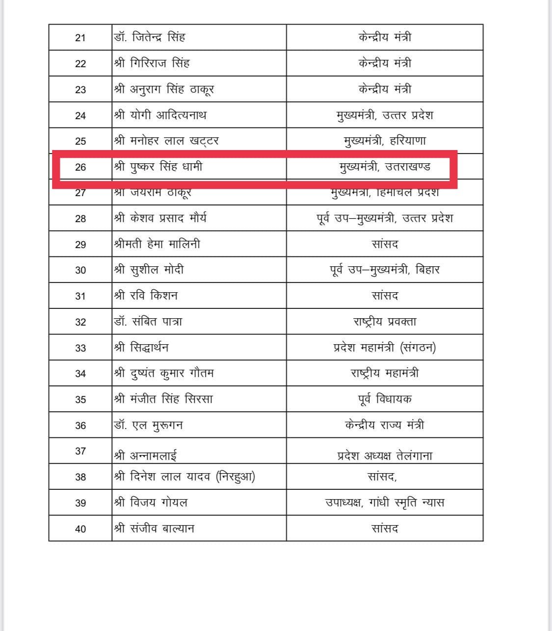 हिमाचल में धामी ने कई विधानसभा क्षेत्रों में जनसभाएं की और जनसंपर्क अभियान में शामिल हुए। अब दिल्ली में होने जा रहे एमसीडी चुनाव में भी भाजपा ने धामी को अपने 40 स्टार प्रचारकों में शामिल किया है। स्टार प्रचारकों की सूची में धामी के अलावा उत्तर प्रदेश, हरियाणा, हिमाचल के मुख्यमंत्री भी शामिल हैं। दरअसल, दिल्ली में उत्तराखंड मूल के मतदाता काफी अधिक संख्या में हैं। पार्टी की रणनीति उनकी जनसभा व अन्य कार्यक्रम ऐसे क्षेत्रों में आयोजित करने की है, जहां उत्तराखंडी मूल के मतदाता परिणाम को प्रभावित करने की स्थिति में हैं।