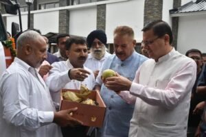 देहरादून: मुख्यमंत्री पुष्कर सिंह धामी ने शुक्रवार को मुख्यमंत्री कैम्प कार्यालय से एपिडा के माध्यम से उत्तराखंड में उत्पादित आम की प्रथम खेप, शहद एवं राजमा के अन्तरराष्ट्रीय बाजार में निर्यात हेतु भेजे जा रहे वाहनों का फ्लैग ऑफ किया। इस अवसर पर 1.5 टन आम, 28 टन राजमा एवं 80 टन शहद का अन्तरराष्ट्रीय बाजार के लिए निर्यात किया गया। मुख्यमंत्री धामी ने कहा कि एपिडा के सहयोग से अन्तरराष्ट्रीय बाजार के लिए राज्य के जो उत्पाद भेजे जा रहे हैं, यह सराहनीय पहल है।